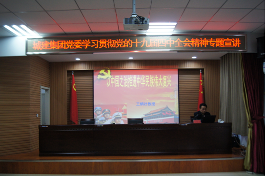 為深入學(xué)習(xí)宣傳黨的十九屆四中全會精神,12月12日,威海城建集團(tuán)黨委理論學(xué)習(xí)中心組對十九屆四中全會精神展開集中學(xué)習(xí),邀請市委十九屆四中全會精神宣講團(tuán)成員、中共威海市委黨校王炳壯教授,以《以中國之治推動(dòng)民族復(fù)興》為題,為全體黨員和干部職工對十九屆四中全會精神進(jìn)行了詳細(xì)講解。集團(tuán)黨委副書記孫曉東同志主持會議并提出具體要求。