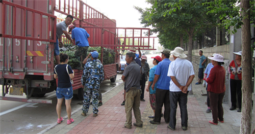 清晨6點(diǎn)職工已到達(dá)綠化工地現(xiàn)場(chǎng), 準(zhǔn)備卸苗木