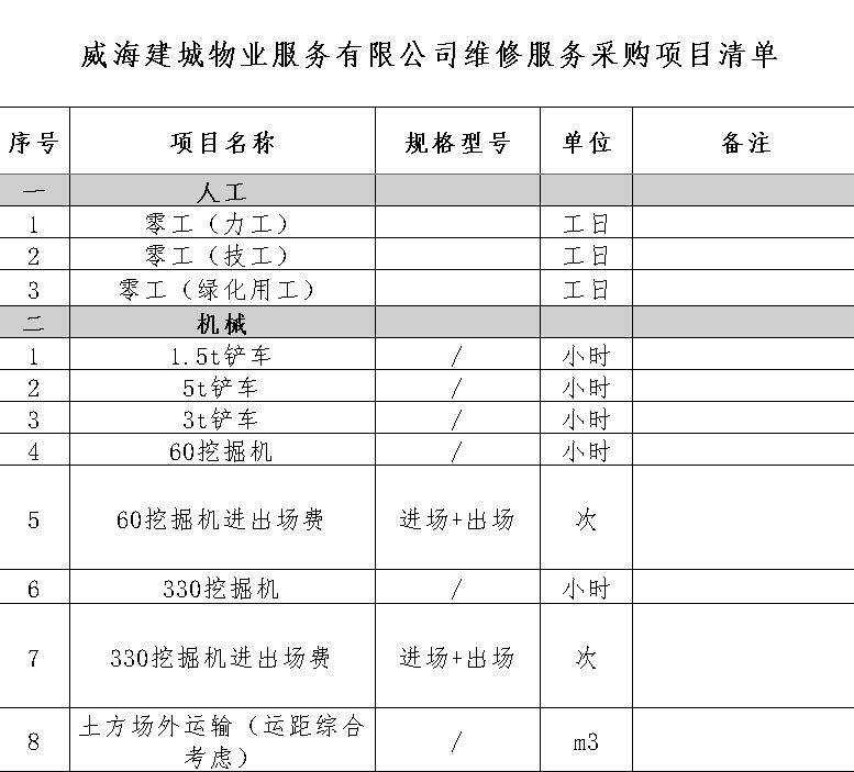 威海建城物業(yè)服務(wù)有限公司維修服務(wù)采購項目