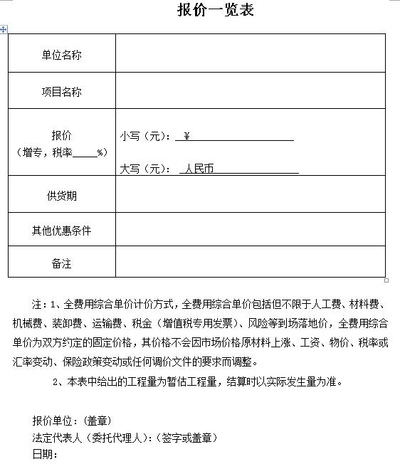 二、報(bào)價(jià)單位資格要求