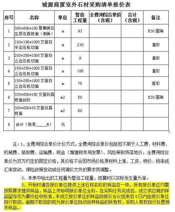 城源商廈室外石材采購(gòu)項(xiàng)目